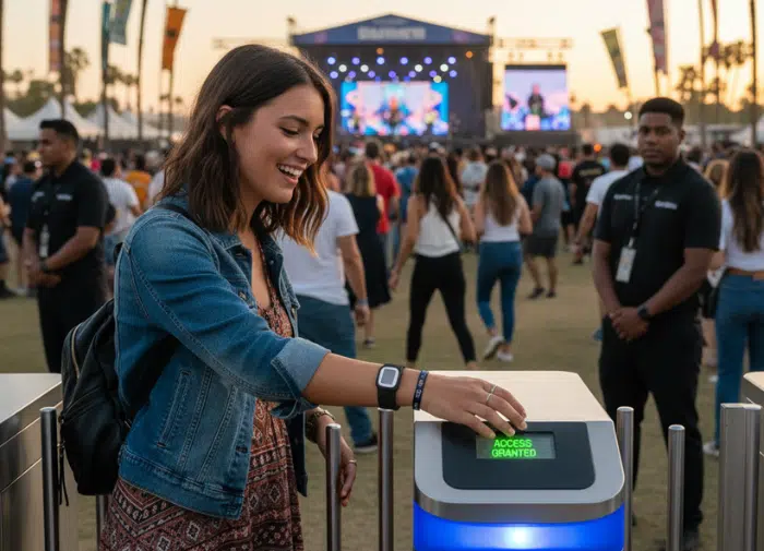 Với giải pháp check-in sự kiện bằng RFID, khách hàng chỉ cần đeo thẻ/vòng tay và bước qua cổng cảm biến. Hệ thống tự động ghi nhận sự hiện diện trong chưa đầy 1 giây mà khách không cần thực hiện bất kỳ thao tác nào. - Khả năng bảo mật tuyệt đối